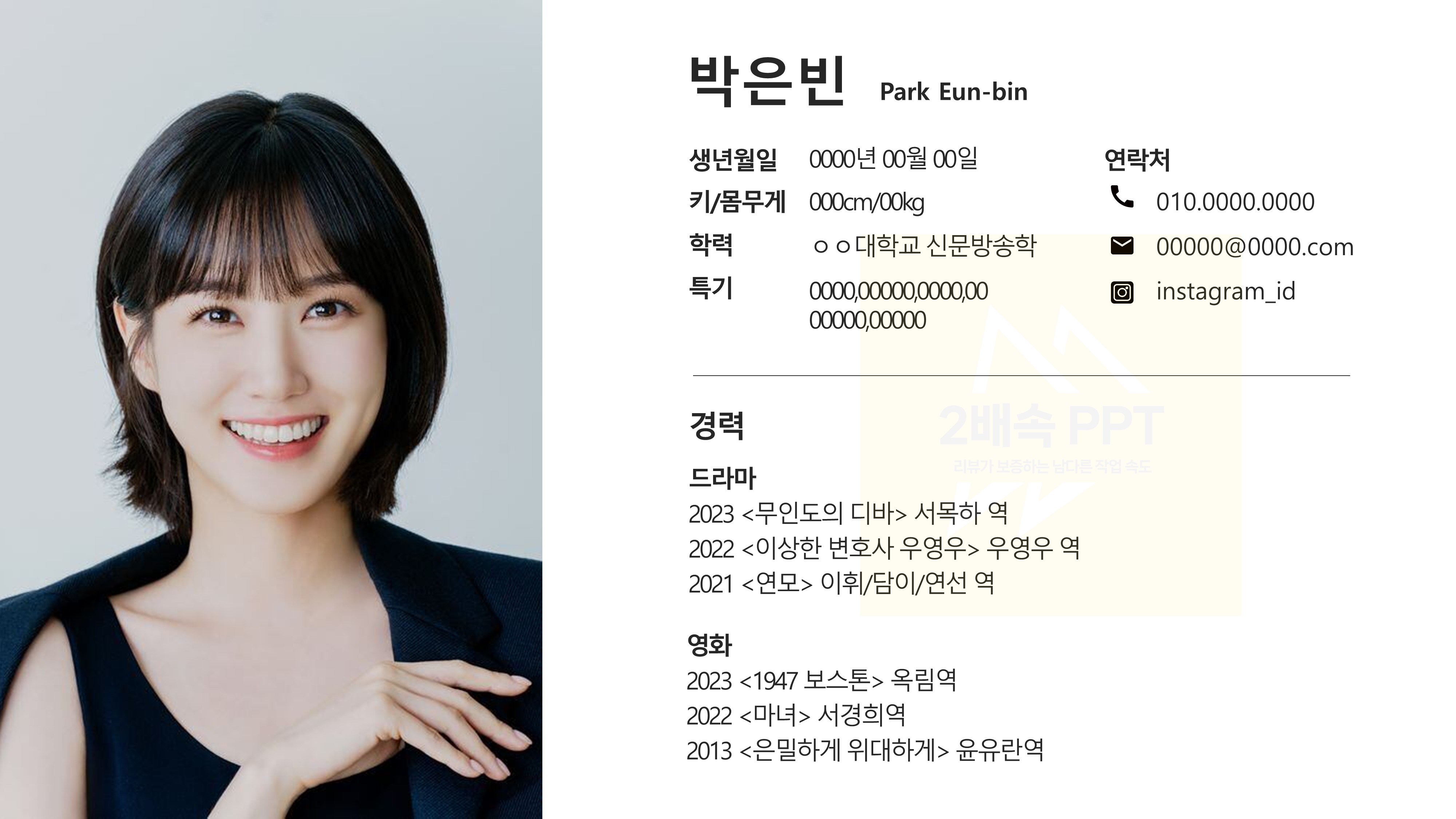 아래에서 배우 프로필 PPT 양식을 다운받아